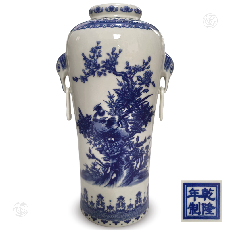 大清乾隆年制款珐琅彩寿桃长颈瓶