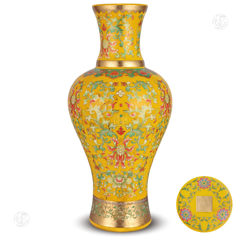 • 黄釉珐琅彩花卉纹赏瓶(乾隆年制款)