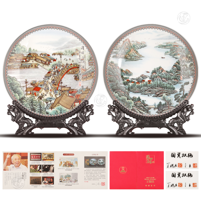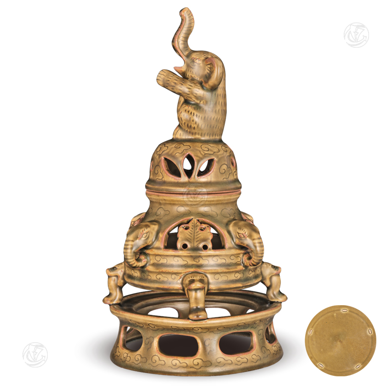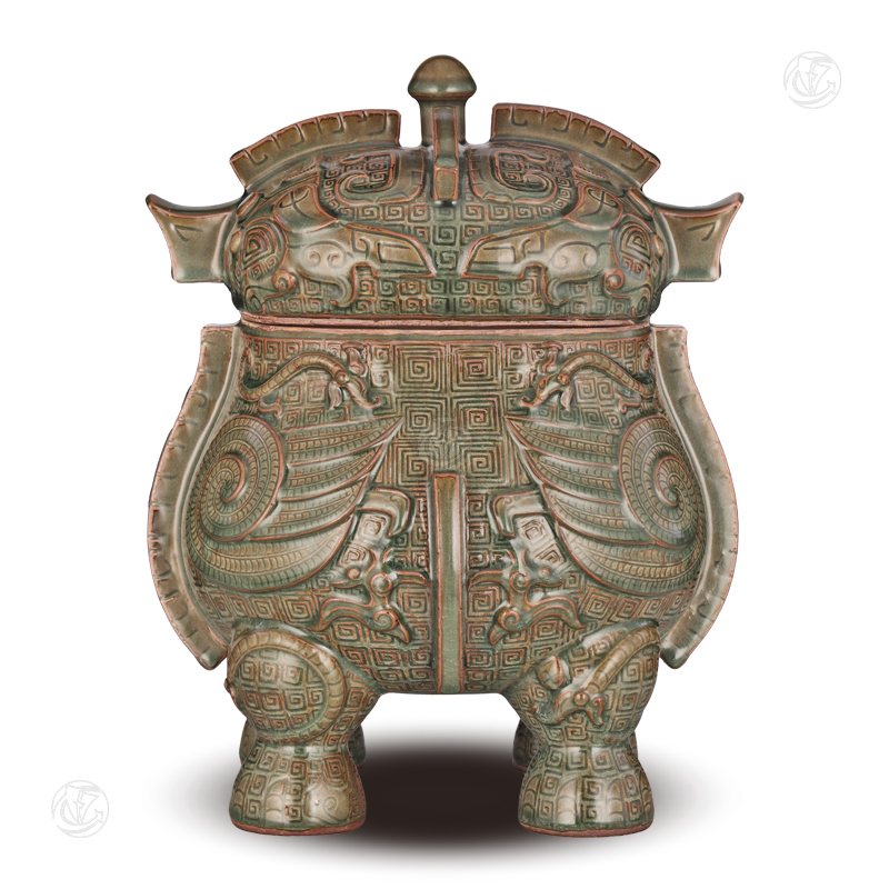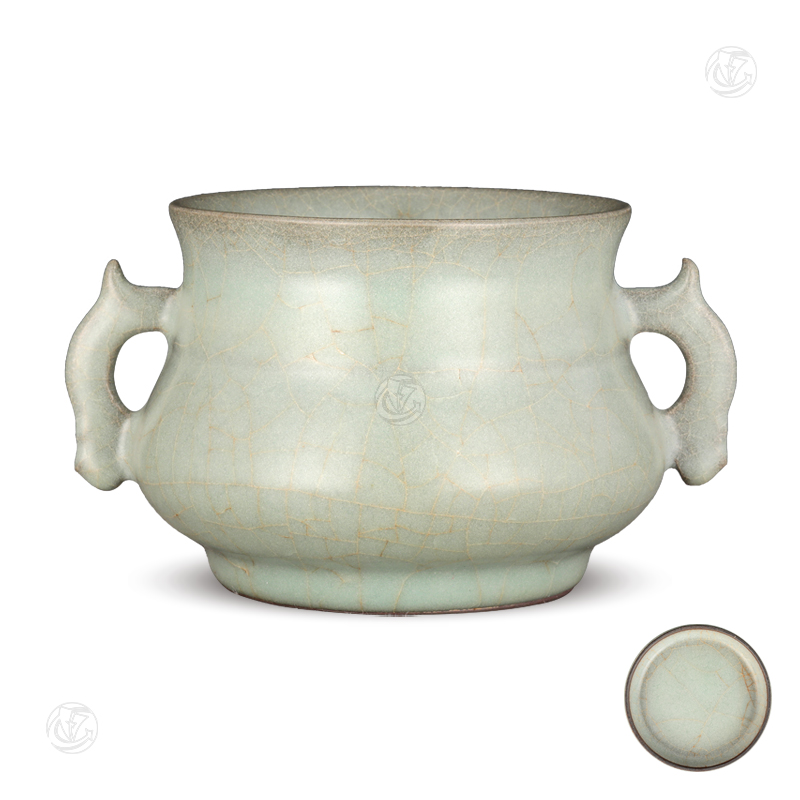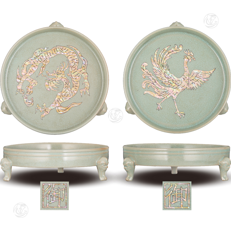 青釉开片嵌螺钿龙凤纹三足洗(1对)