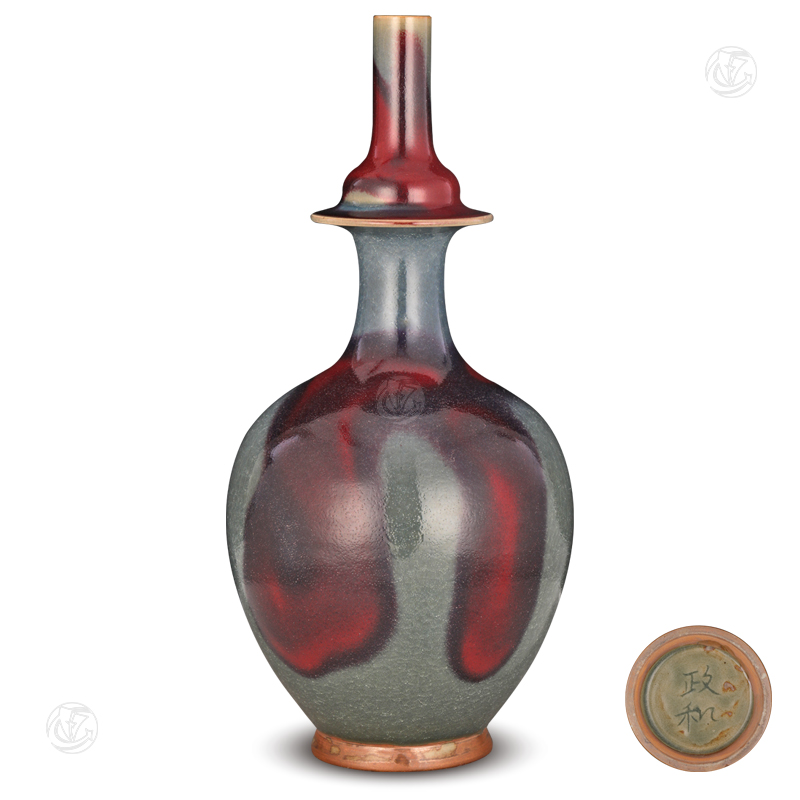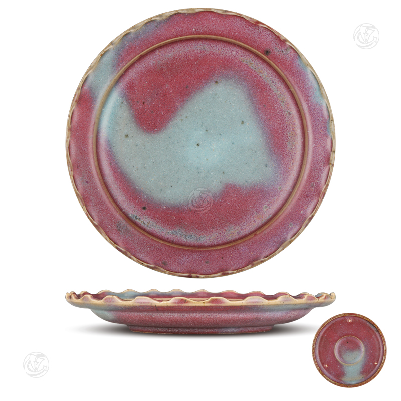 宋钧瓷窑变釉玫瑰紫花口折沿盘