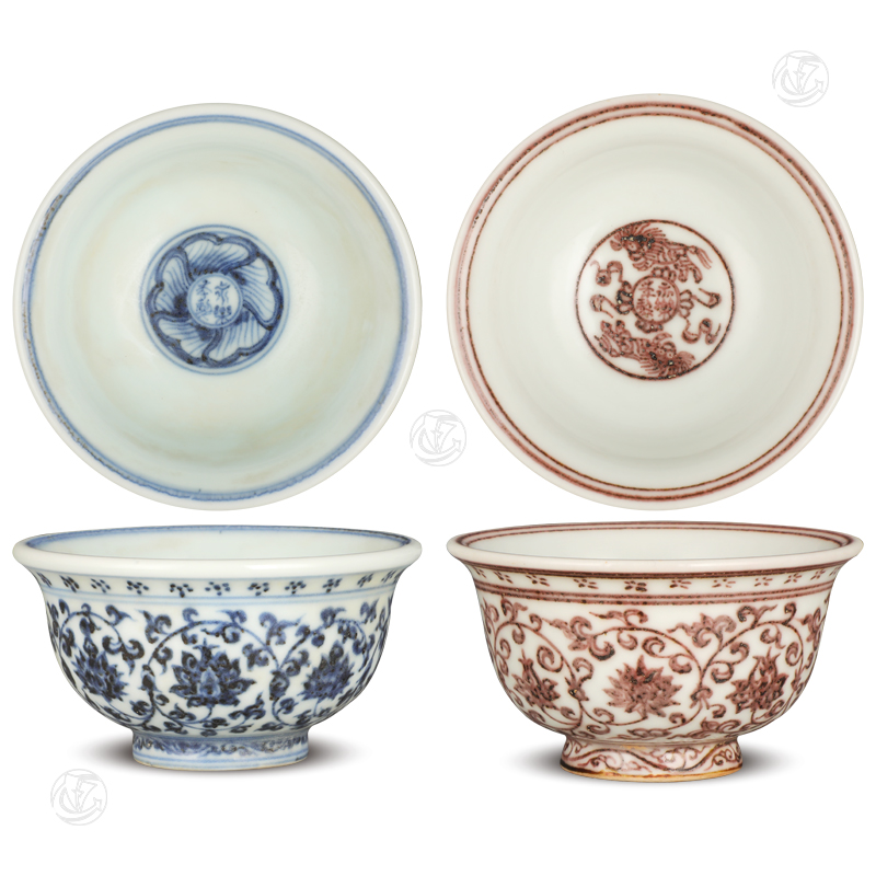 明永乐 青花釉里红压手杯(1对)