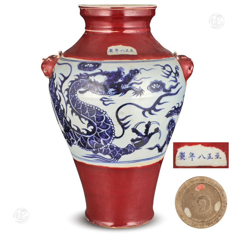 • 至正八年制青花釉里红龙纹双耳瓶