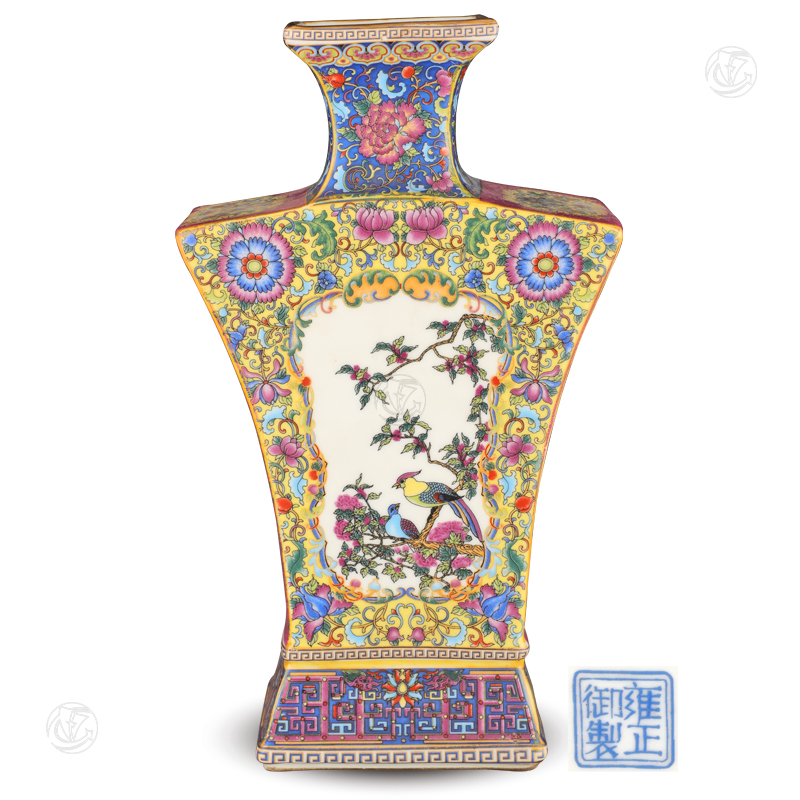 乾隆御制款 珐琅彩开窗花鸟纹棒槌瓶 ···